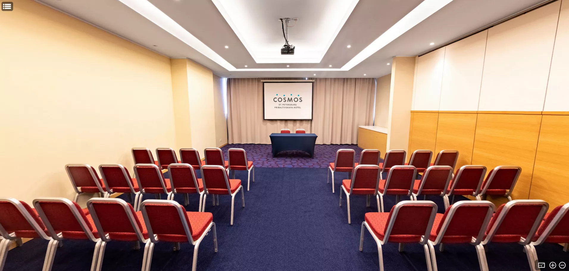 Универсальный зал для проведения деловых и светских мероприятий. Оснащен бесплатным высокоскоростным Wi-Fi, кондиционером и аудиовизуальным оборудованием