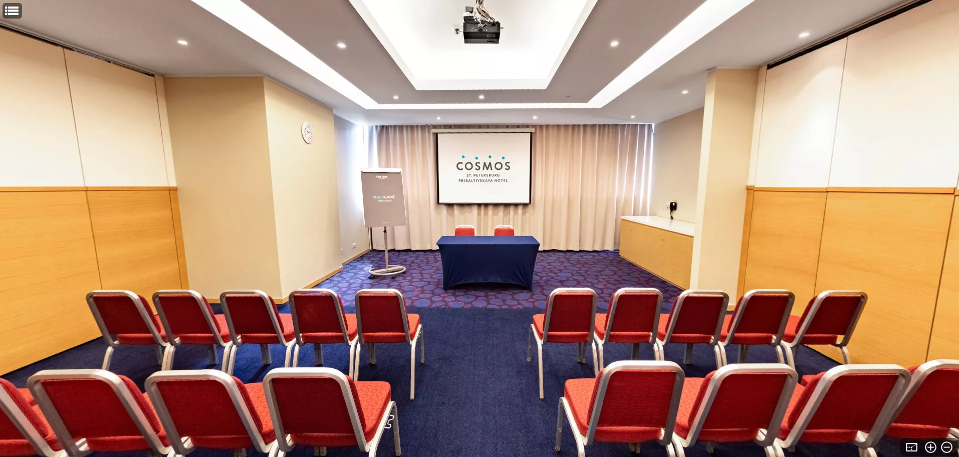 Удобное и комфортабельное помещение для проведения совещаний и деловых переговоров. Оснащено бесплатным высокоскоростным Wi-Fi, кондиционером и аудиовизуальным оборудованием.